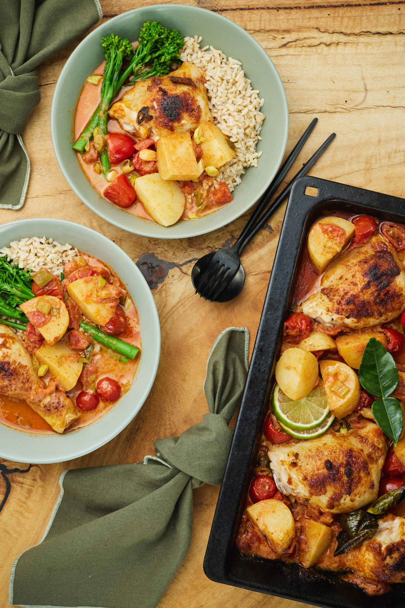 Perfect for a mid-week dinner, this recipe for One Tray Chicken and Potato Curry is adaptable to a range of ingredients and you can try it with various curry pastes too!